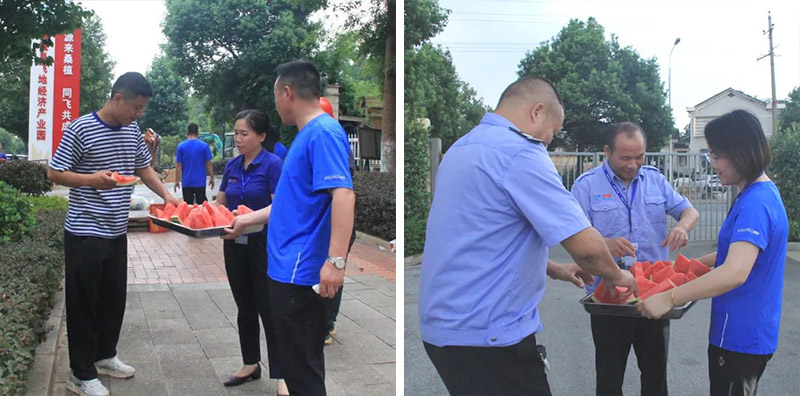 7月28日,波隆水務(wù)集團管理層為冒高溫、戰(zhàn)酷暑的生產(chǎn)一線職工送去公司的關(guān)懷與慰問。