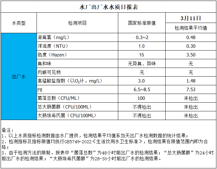 水廠出廠水水質(zhì)日報表(2025-3-11)