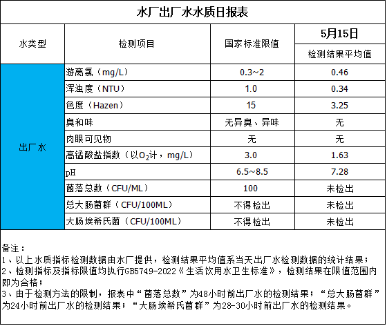 水廠出廠水水質(zhì)日報表(2025-5-15)