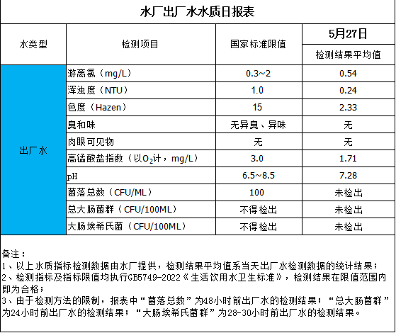 水廠出廠水水質(zhì)日報表(2025-5-27)