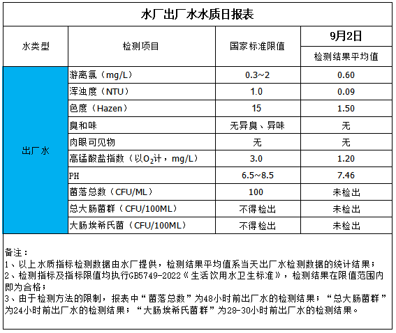 水廠出廠水水質(zhì)日報(bào)表(2025-9-2)