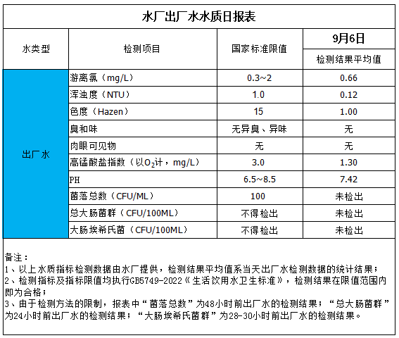 水廠出廠水水質(zhì)日?qǐng)?bào)表(2025-9-6)