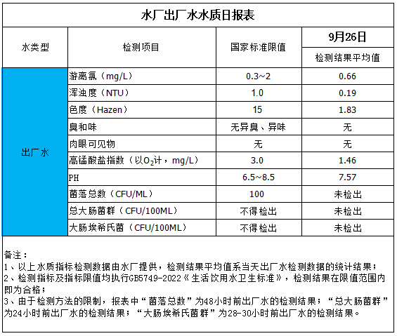 水廠出廠水水質(zhì)日報表(2025-9-26)