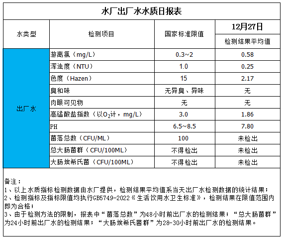 出廠水水質(zhì)日?qǐng)?bào)表(2025-12-27)
