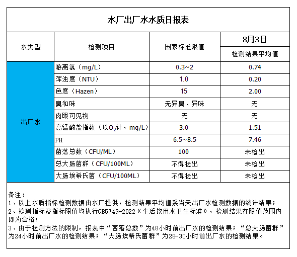 水廠出廠水水質(zhì)日?qǐng)?bào)表(2023-8-3)