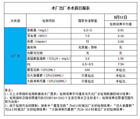 水廠出廠水水質(zhì)日報表(2023-8-11)