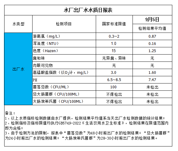 水廠出廠水水質(zhì)日?qǐng)?bào)表(2023-9-5)