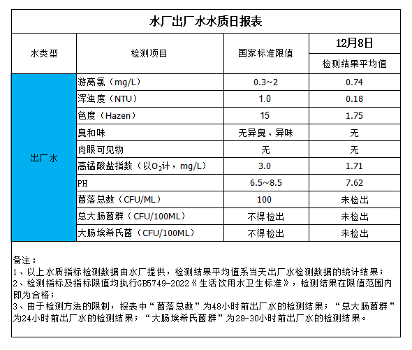水廠出廠水水質日報表(2023-12-8)