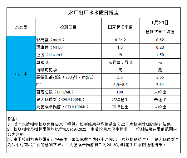 水廠出廠水水質(zhì)日報(bào)表(2024-1-24)