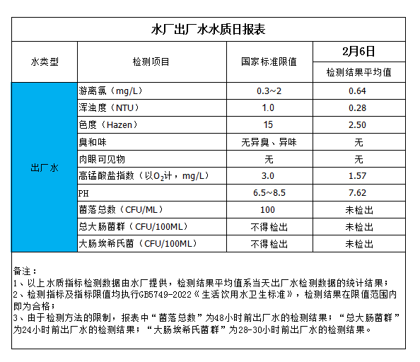 水廠出廠水水質(zhì)日?qǐng)?bào)表(2024-2-6)
