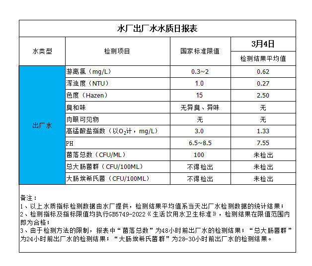 水質(zhì)報告