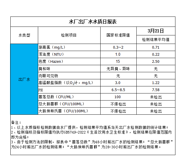 水廠出廠水水質日報表(2024-3-21)