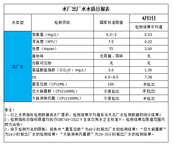 水廠出廠水水質(zhì)日報(bào)表(2024-4-2)