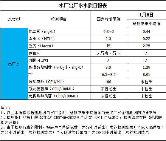 水廠出廠水水質(zhì)日報表(2025-1-8)
