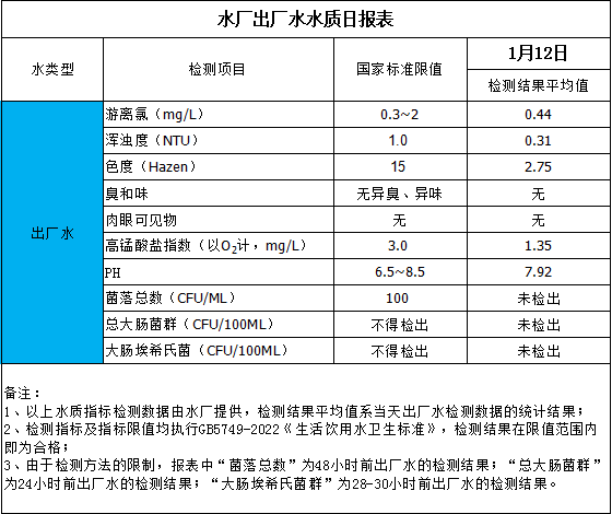 水廠出廠水水質(zhì)日報表(2025-1-12)